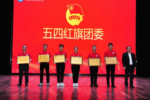 学校领导依次为五四评选先进集体和个人、“青春榜样”教师和学生、青年校友颁奖并合影留念。