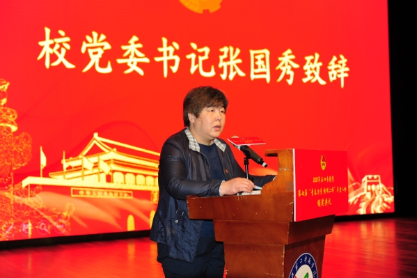 校党委书记张国秀致辞。她讲到,今年是中国共产党建党100周年、五四运动102周年、我校建校90周年,在这个特殊的年份里,我们隆重集会纪念“五四青年节”具有特殊的意义。她结合联系班级开展学习《习近平的七年知青岁月》读书分享会活动的经历,分享了自己多次阅读《习近平的七年知青岁月》的学习体会,她号召学校青年教师和学生要向习近平总书记学习,在年轻时要勤读书、肯吃苦、立大志。最后,张国秀引用了习近平总书记在清华大学考察时的讲话精神,勉励大家要肩负历史使命,坚定前进信心,立大志、明大德、成大才、担大任,努力成为堪当民族复兴重任的时代新人。