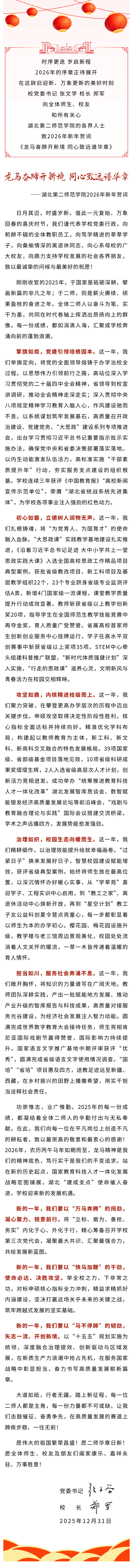 龙马奋蹄开新境 同心致远谱华章——湖北第二师范学院2026年新年贺词-小鸟体育