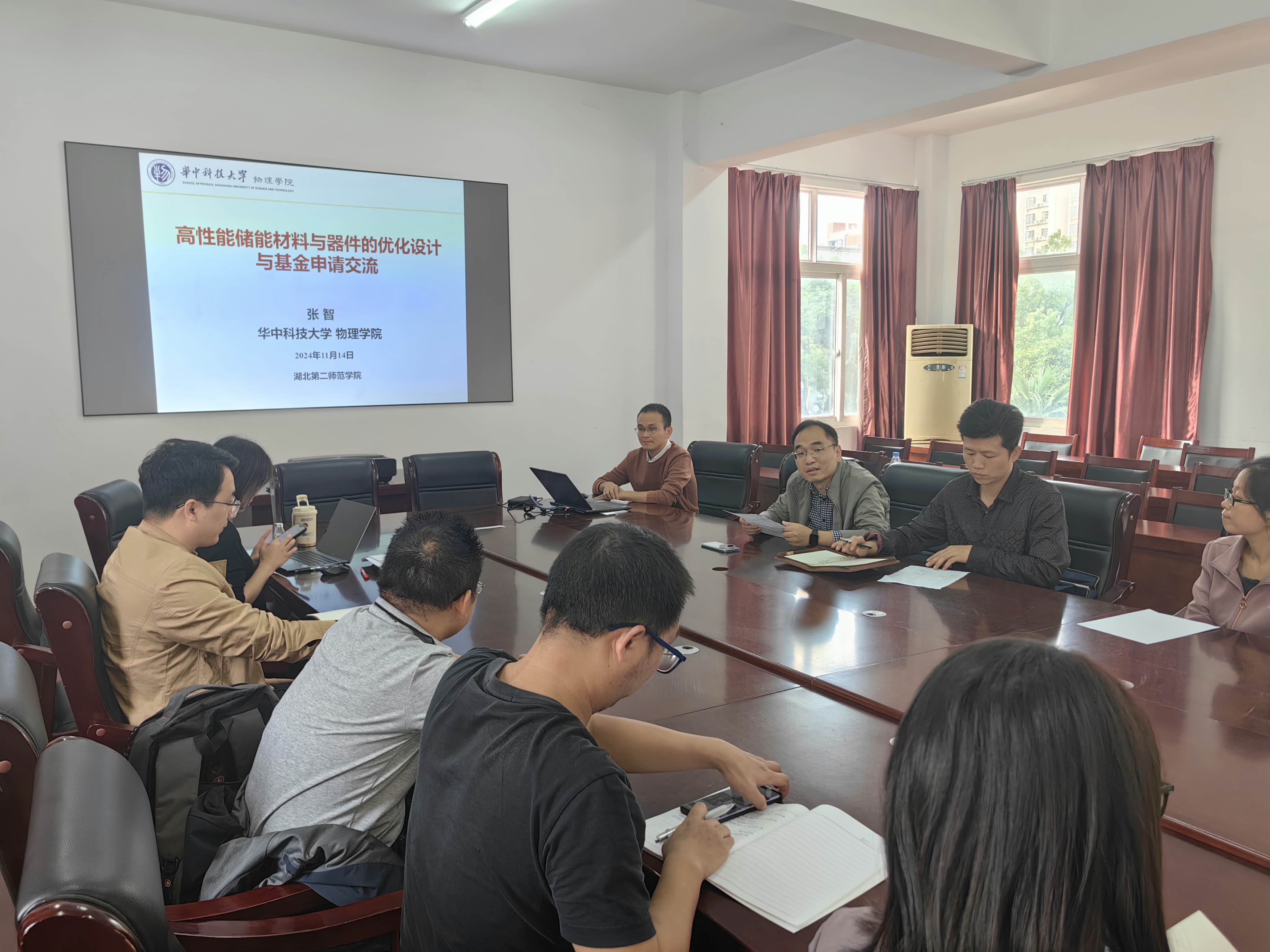 (通讯员谢浩)2024 年 11 月 14 日(周四)下午,学院邀请华中科技大学物理学院副教授、博士生导师张智来校讲学。学院副院长程志远主持,材料系全体教师和学院青年教师全部参与。