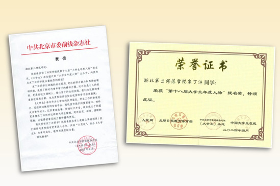 宋丁沣同学获第十八届“大学生年度人物”提名奖-小鸟体育
